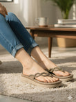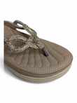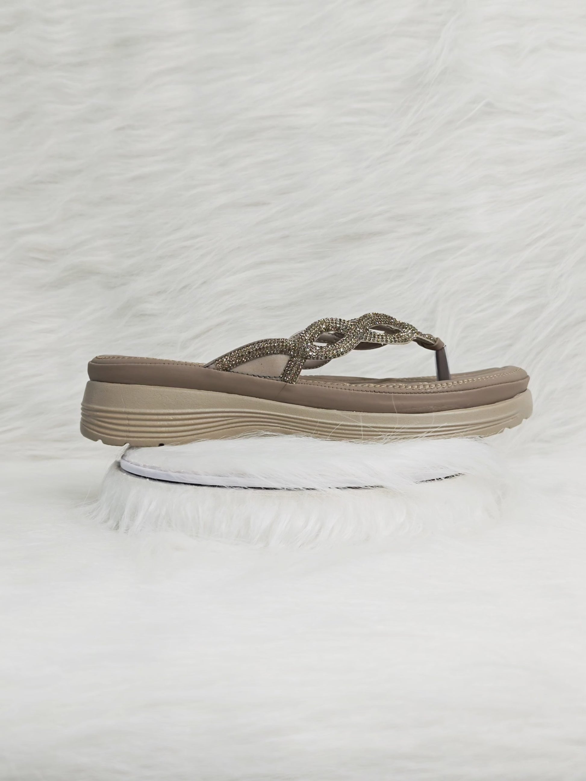 Step up your style and comfort with these beige embellished wedge thong sandals for women, designed for those who appreciate a mix of elegance and ease. Featuring a soft cushioned footbed with quilted detailing, these sandals provide all-day support and comfort.