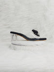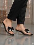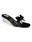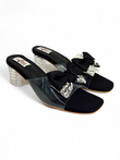 Black Bow Embellished Clear Block Heel Sandals for Women