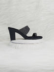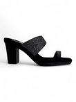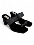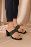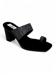 Black Toe-Ring Shimmer Strap Block Heel Sandals for Women