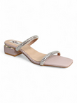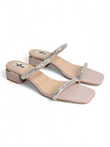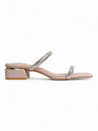 Crystal Embellished Double Strap Block Heel Sandals for Women – Nude