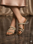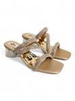 These gold triple-strap crystal sandals are designed to make you shine at every event. The clear block heel adds a modern touch while offering stability and comfort. Ideal for festive wear, weddings, and evening parties—these heels instantly elevate any outfit.