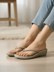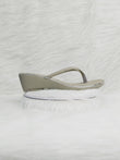 Grey Rhinestone Wedge Thong Sandals for Women