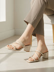 Nude Minimal Strappy Block Heel Sandals for Women
