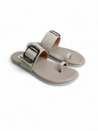 Elegant Beige Flat Toe-Ring Sandals with Buckle Strap for Women