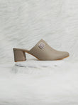 These taupe closed-toe block heel mules are designed for women who appreciate both style and comfort. The minimal buckle detail adds a refined touch, while the soft cushioned footbed ensures hours of comfortable wear. Ideal for work, meetings, outings, and everyday elegance.